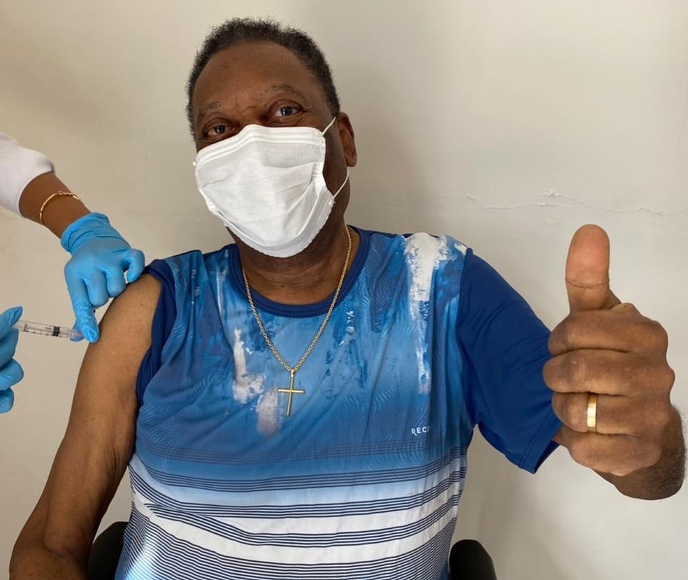 Pelé recebeu, nesta terça-feira (2), a primeira dose de vacina contra a Covid-19. O Rei do Futebol, de 80 anos, celebrou a imunização nas redes sociais.