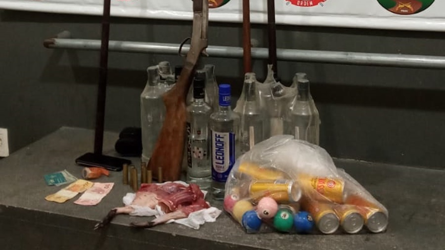 Após receber denúncia, a Polícia Militar interceptou o funcionamento indevido de um bar ilegal na Comunidade Liberdade, BR-364, na madrugada deste domingo, 14. Durante as buscas foram apreendidas uma espingarda calibre 32, com sete munições intactas e carne de caça.