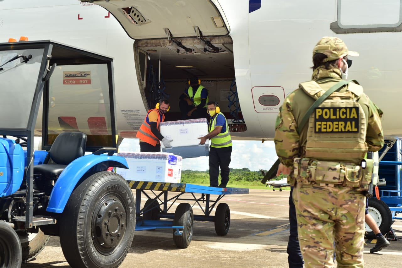 O Acre recebeu nesta sexta-feira, 16, mais 15.400 doses de vacinas contra a Covid-19. O lote foi desembarcado no Aeroporto Internacional de Rio Branco às 13 horas e seguiu para a Central da Rede de Frios estadual, onde será organizada a distribuição às regionais da Saúde.
