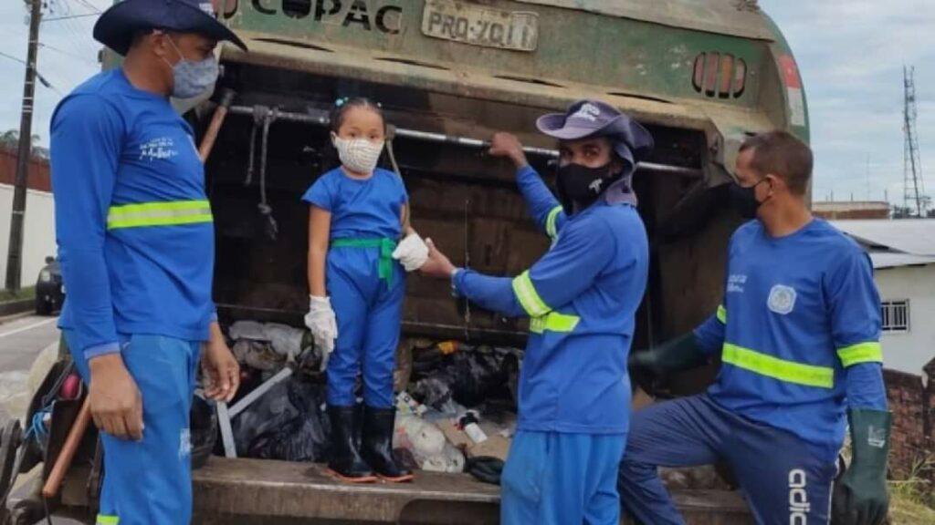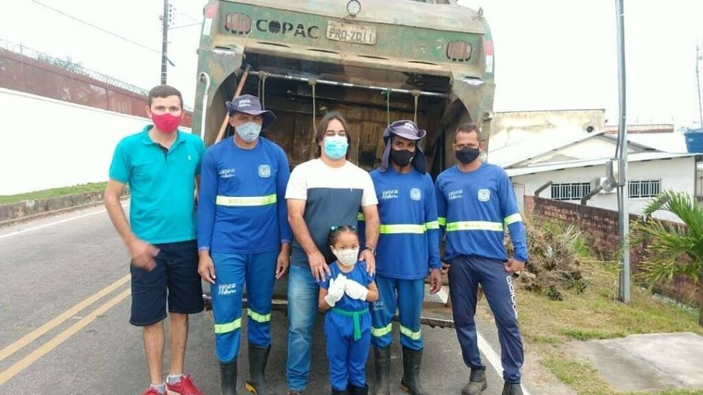 A princesinha Clara, de 5 anos, moradora do município de Cruzeiro do Sul, sempre teve admiração pelos coletores de lixo e os considera seus amigos. Ela sempre dizia para a sua mãe: “mamãe, eles são importantes porque limpam nossa cidade”.