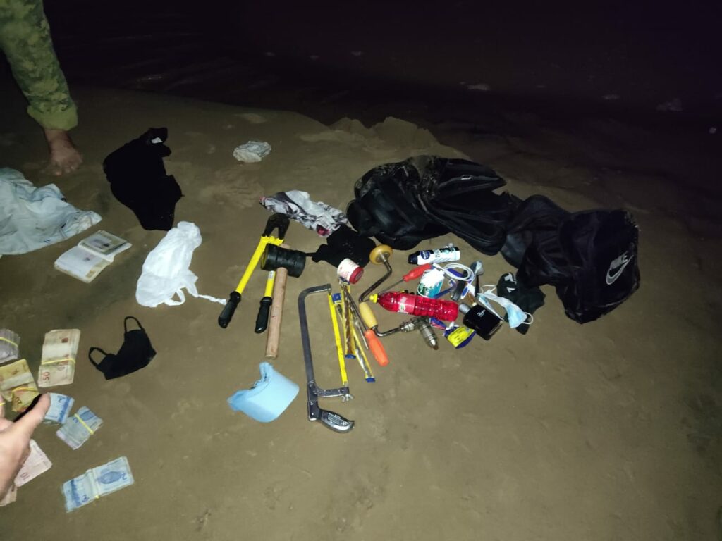 Com os homens, que tentaram fugir pela mata ciliar, mas foram capturados, a Polícia Militar encontrou R$ 11 mil e o material utilizado para arrombar o local de onde o dinheiro foi levado. “Os indivíduos já foram entregues na delegacia de polícia aqui de Cruzeiro do Sul”, relata o comandante da Polícia Militar da cidade, tenente-coronel Evandro Bezerra.