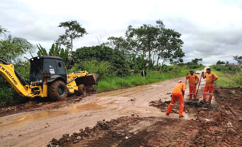 O trabalho na BR-364 entre a capital e a segunda maior cidade do Estado é feito por 3 empresas, sendo duas do Acre e outra de Rondônia, além do Batalhão de Engenharia e Construção – 7º BEC.