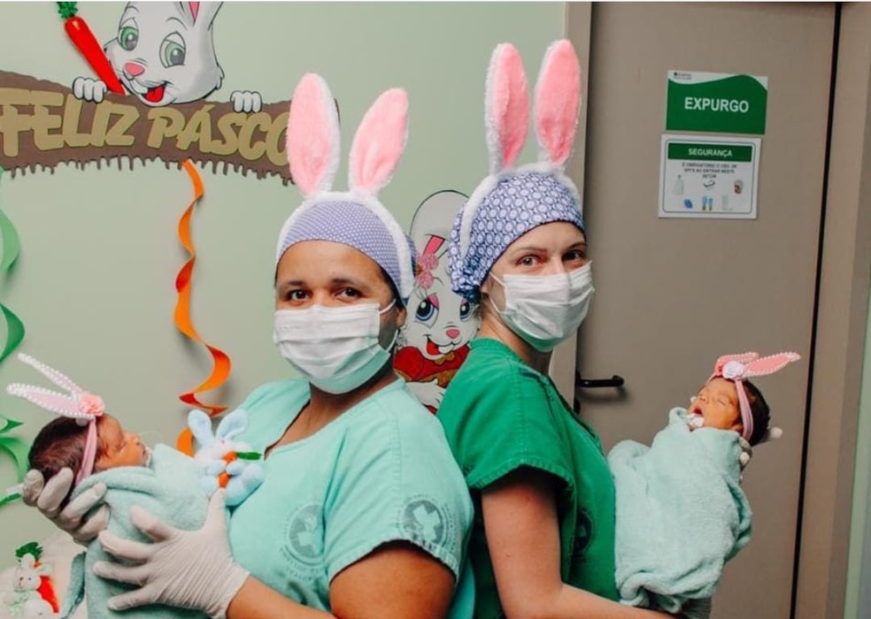 Outra que foi transformada em ‘coelhinha’ por um dia foi a pequena Maria Alice dos Santos Bandeira, de 12 dias de vida. Ela também recebeu alta da UTI na sexta (2) e está no alojamento conjunto esperando alta médica.