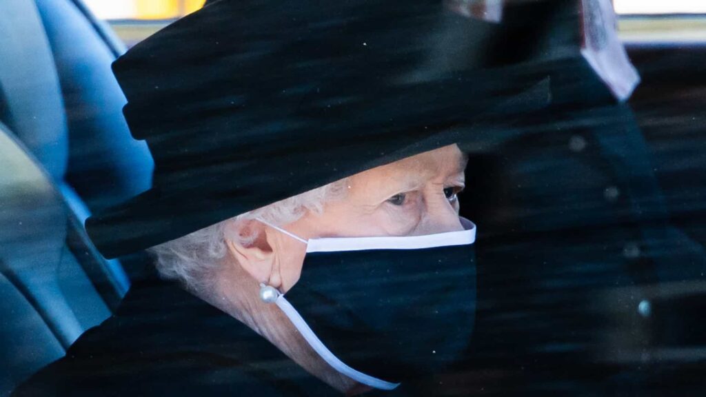 Elizabeth, 94, já foi vacinada com as duas doses da vacina contra o coronavírus, mas mesmo pessoas imunizadas devem seguir tomando cuidados e evitar aglomerações. A família real não usou máscaras durante a procissão fúnebre, ao ar livre, mas as colocou ao entrar na capela.