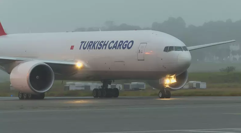 O carregamento, vindo de Pequim, na China, chegou ao Aeroporto Internacional de São Paulo, em Guarulhos, às 6h13. O voo da companhia aérea Turkish Airlines passou por escalas na Turquia e Islândia.