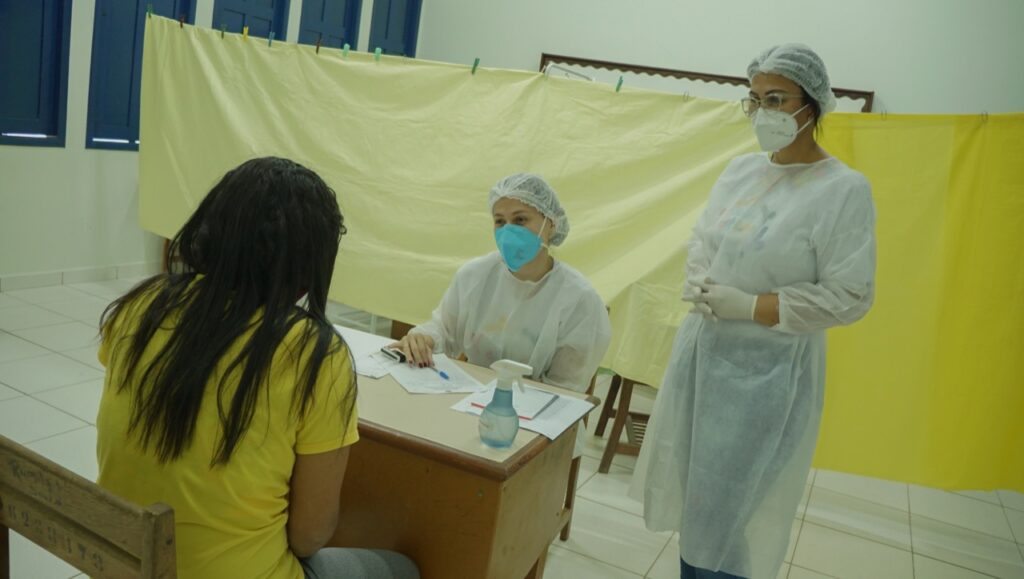 Considerando a necessidade de fortalecer as ações de promoção à saúde, prevenção de agravos e disseminação da Covid-19 nos municípios do Acre, a Secretaria de Estado de Saúde do Acre (Sesacre), por meio da Diretoria de Redes de Atenção à Saúde e Saúde Itinerante Especializado, do Departamento de Atenção Primária e coordenação de Saúde Bucal, realizou, no último fim de semana, 1.791 atendimentos com uma equipe multiprofissional e especializada.