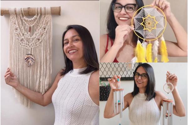 “Tenho uma loja de roupas para tamanhos plussize e tive que fechar as portas por conta da pandemia. Como ela era em casa, o risco de contaminação era maior para minha família. Após fechar a loja veio a necessidade de se reinventar, e procurar fazer alguma coisa, e já tenho o dom de trabalhar com o artesanato, toda minha família tem, mais nunca colocamos em prática para trabalhar como fonte principal de renda. Alguns anos atrás já trabalhei com bijuterias, dei curso no SENACos 90, mais ficou pra traz. Com tudo isso, veio a necessidade de fazer alguma coisa, de me reinventar e aflorou o artesanato que estava adormecido dentro de mim”, comentou a artesã.