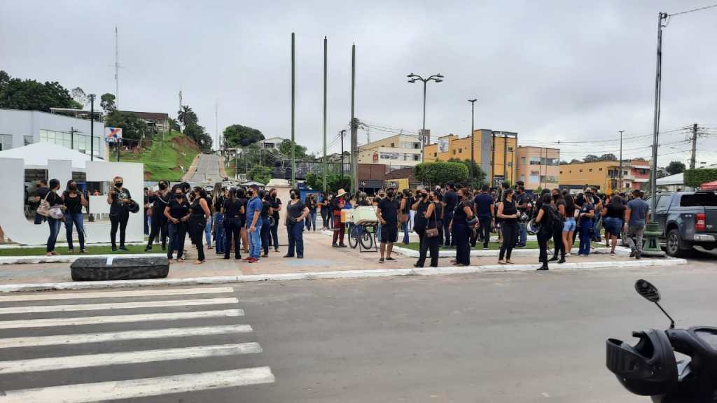 Os trabalhadores se vestiram de preto, para prestar luto a todos os profissionais da educação que já morreram em decorrência ao coronavírus.