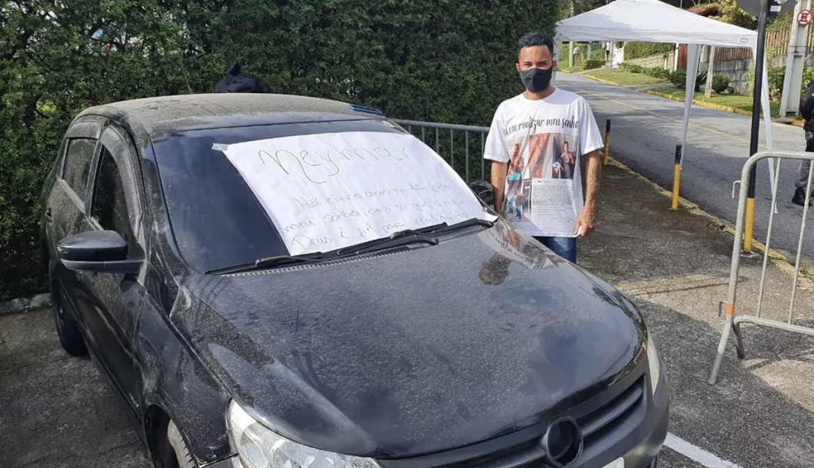 Eles pararam o carro bem ao lado do portão onde os veículos precisam passar para acessar a Granja. Qualquer jogador que chegasse por terra ao local veria o carro preto com um cartaz no para-brisa, com o nome de Neymar em destaque e os seguintes dizeres: “Há cinco anos na luta pelo meu sonho, pois sei que o meu Deus é fiel para realizá-lo”.