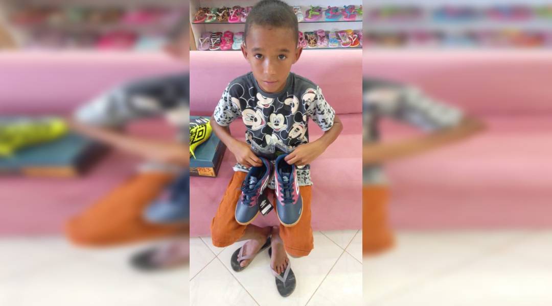 Integrante da Escolinha Solidária de Futsal – que tem como facilitador o professor Adir Pereira -, ele calçou um tênis pela primeira vez em sua vida e ficou extremamente feliz.