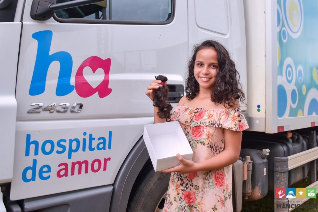 “Eu ouvi muitas histórias sobre crianças e adolescentes com câncer que tocaram muito o meu coração. No começo minha mãe não concordou mas depois deixou. Eu cortei e guardei direitinho e soube que a carreta viria para cá então vim entregar e espero que faça alguém feliz como estou agora. Espero que outras pessoas também doem”, contou ela emocionada ao entregar os cabelos à equipe do Hospital.