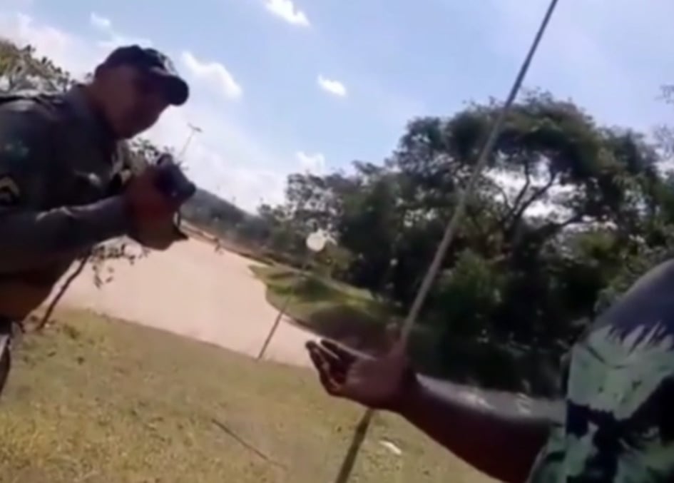 Os dois discutem mais durante a abordagem e, após colocar as algemas no atleta, o policial apreende a câmera de Filipe e encerra a gravação.