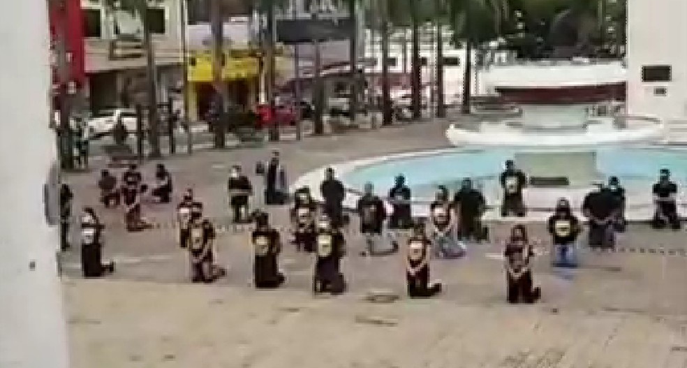 Os aprovados se ajoelharam em frente ao Palácio no momento em que Cameli deixava o local com a escolta pessoal.