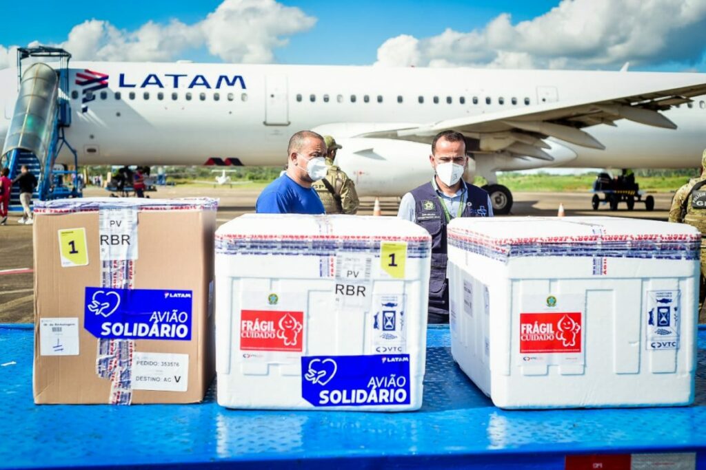 O Acre acaba de receber mais duas remessas de vacinas para a imunização da população contra a Covid-19, que chegou ao estado em uma aeronave que pousou no Aeroporto de Rio Branco, no início da tarde desta quarta-feira, 26. Com o envio, o Acre pretende avançar na inclusão de novos grupos, imunizando trabalhadores da educação básica, sistema prisional, Forças Armadas e transporte aéreo.