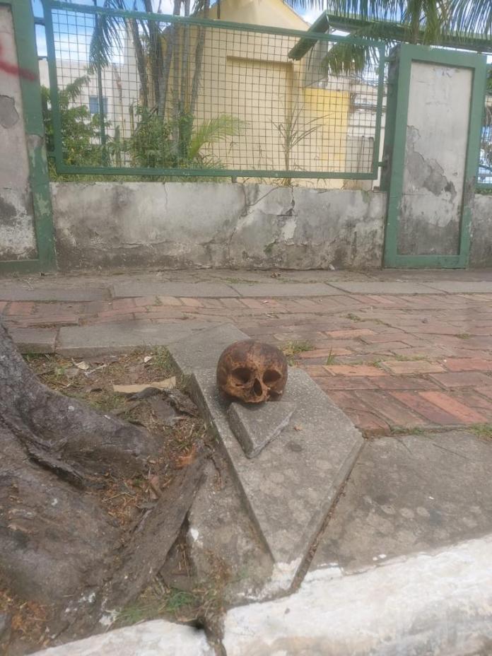 O crânio foi coletado pelos peritos e encaminhado ao Instituto Médico Legal (IML) que posteriormente será recolocado no seu devido lugar.