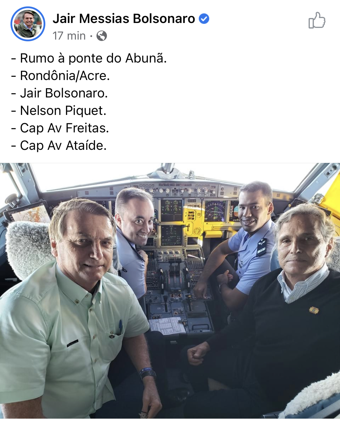 Presidente Bolsonaro posta foto “ruma à ponte do Abunã”
