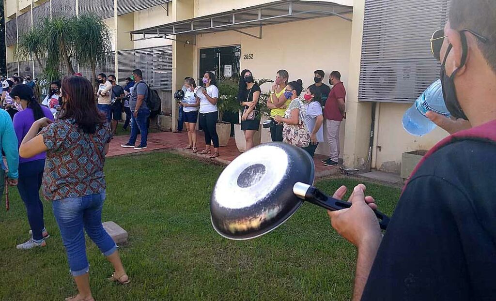 Na manhã desta sexta-feira (21), servidores da educação realizaram um panelaço em frente à Procuradoria Geral do Estado (PGE) com o propósito de cobrar a divulgação do parecer com a proposta efetuada pelo governo.