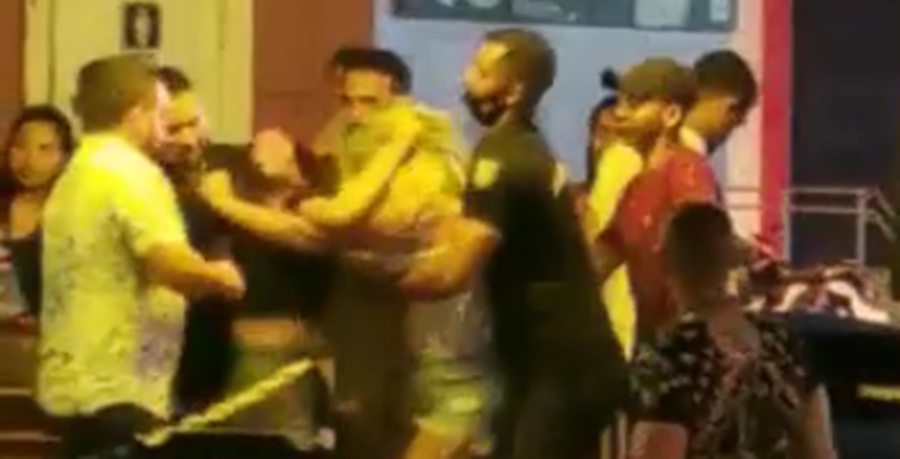 Nas imagens é possível ver o momento em que seguranças e o dono do estabelecimento empurram a dupla para a parte de fora do bar.