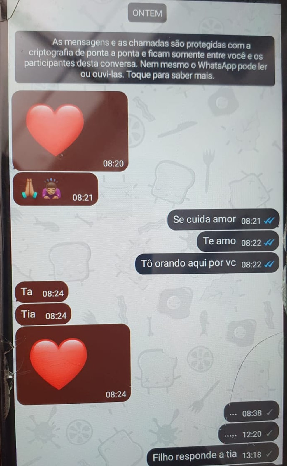 Na porta do Instituto Médico Legal, na Região Central do Rio, nesta sexta-feira (6), Rosiane Mendes, tia de John Jefferson Mendes Rufino da Silva, 30 anos, mostrava a conversa que ele teve com a com a irmã Ingrid Hellen.
