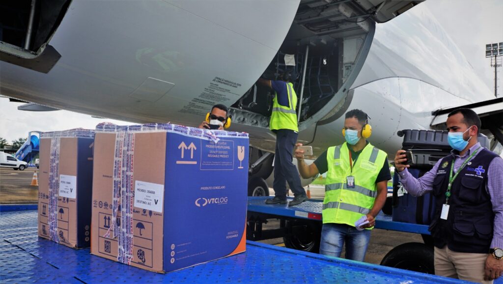 O processo de entrega aos municípios se dá com o auxílio das demais instituições do governo do Estado como a Segurança Pública, para que os imunizantes cheguem de forma célere até as localidades mais isoladas, constituindo um esforço da Sesacre, por determinação do governo do Estado.