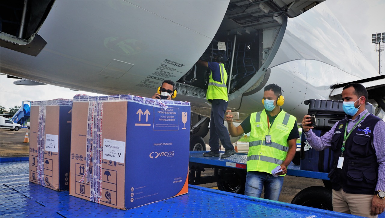 O governo do Estado, por meio da Secretaria de Estado de Saúde do Acre (Sesacre), recebeu do Ministério da Saúde (MS) nesta terça-feira, 8, mais 9.360 doses da vacina contra a Covid-19, produzida pela farmacêutica Pfizer. O governador Gladson Cameli esteve no aeroporto para acompanhar de perto a chegada do imunizante em solo acreano.