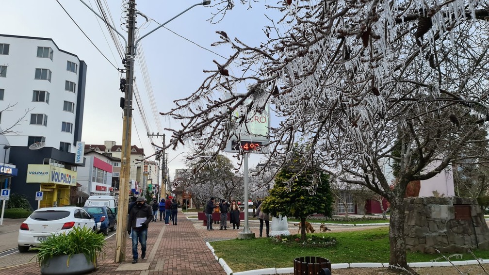 Santa Catarina registrou o dia mais frio do ano no Brasil nesta terça-feira (29). Segundo o meteorologista Cleber Souza, do Instituto Nacional de Meteorologia (Inmet), a menor temperatura do país até agora foi registrada em Bom Jardim da Serra, onde fez -7,5ºC, às 7h.