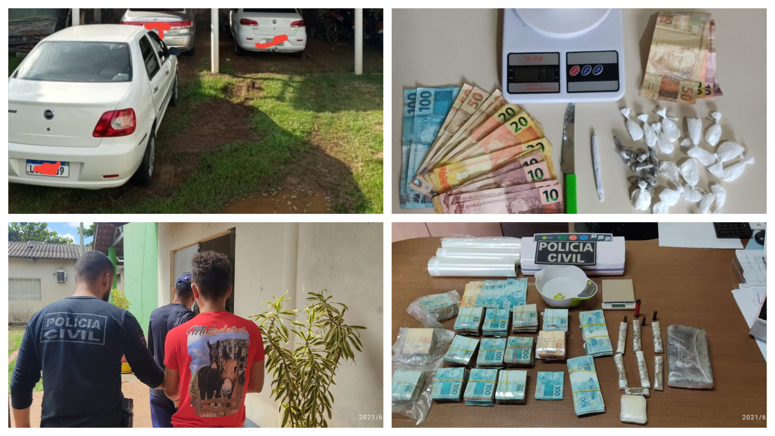 Além do dinheiro e do material entorpecente apreendido, a Polícia Civil também apreendeu três veículos que foram adquiridos com dinheiro oriundo da venda de entorpecente.