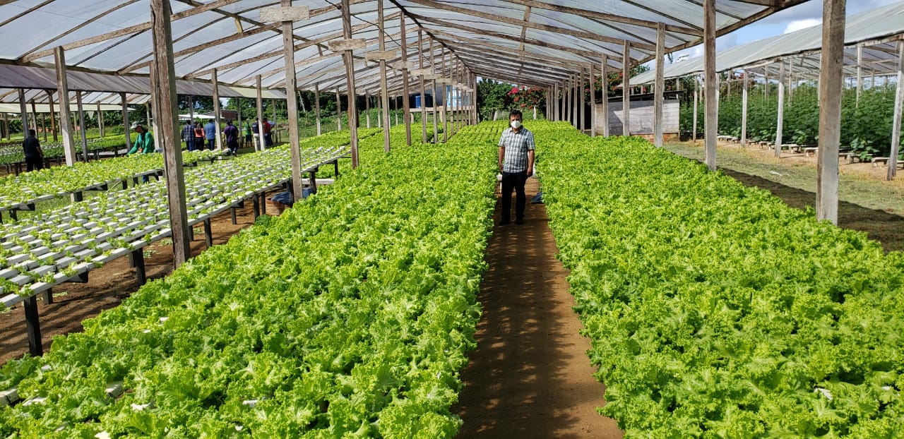 Gonzaga esteve acompanhado do governador em exercício, Major Rocha, deputado Roberto Duarte, o secretário Nenê Junqueira, e representantes da Emater. A visita fez parte do projeto Caravana da Produção, idealizado pelo governo do estado. O parlamentar do PSDB acompanhou de perto produções de hidropônico de gerimum, tomate, alface, pepino, mamão, couve, melancia, macaxeira, galinha, porco e outros que estão espalhados em uma área de 89 hectares.