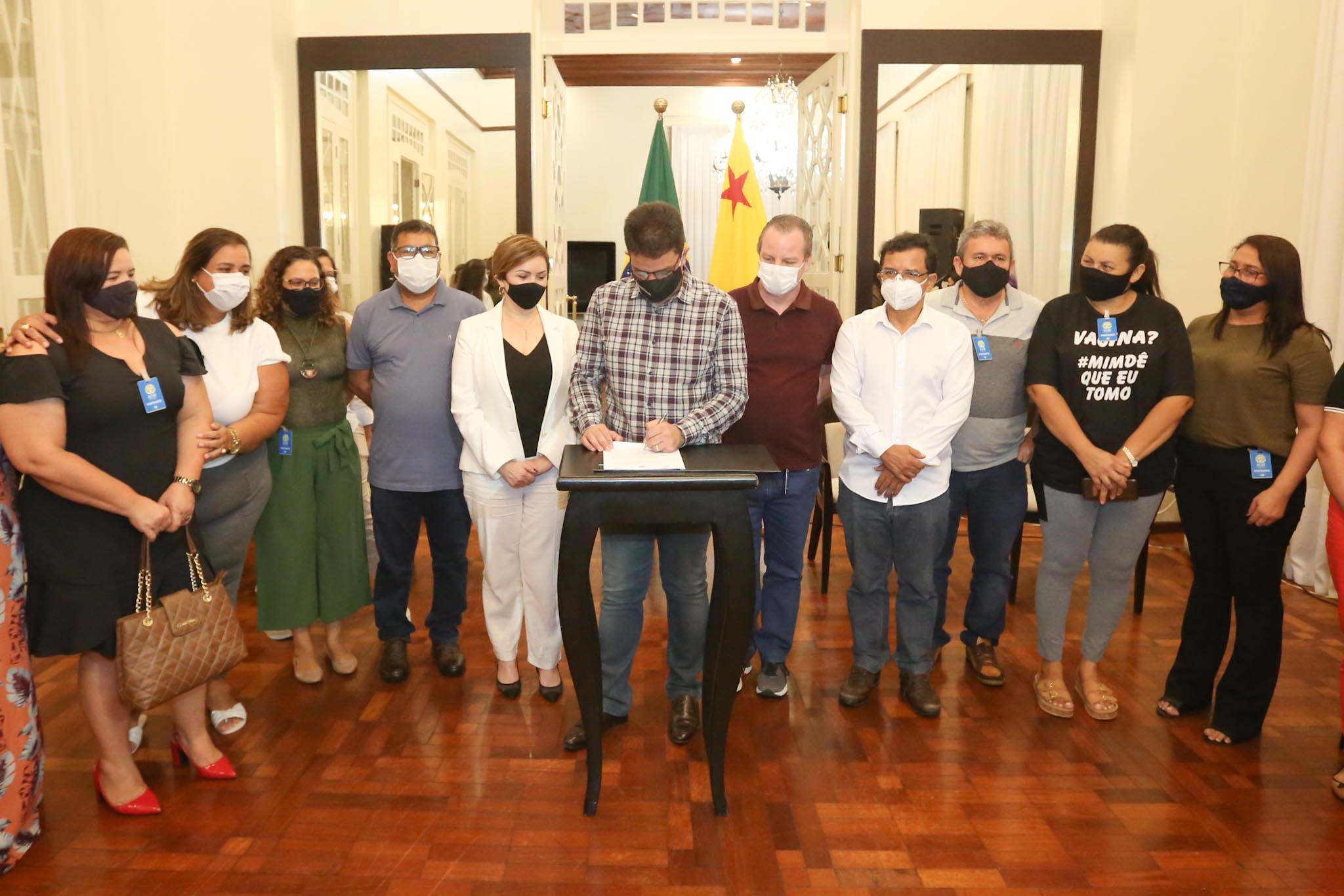 Mais uma importante conquista foi assegurada pelo governo do Estado Acre aos servidores da Educação. Nesta terça-feira, 8, o governador Gladson Cameli homologou a lei complementar nº 383/2021, instituindo, em caráter definitivo, o pagamento mensal de uma bolsa de incentivo ao estudo, pesquisa e aprimoramento aos profissionais que atuam nas escolas estaduais de ensino em tempo integral.