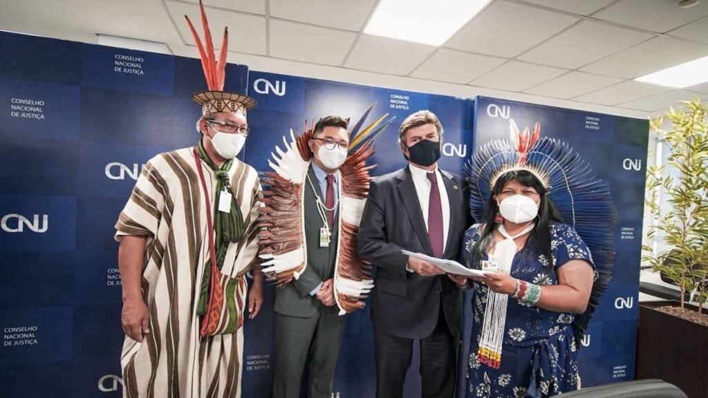 Ainda durante a reunião com o presidente do Supremo, a Apib, representado por sua Coordenadora nacional, Sonia Guajajara, entregou uma Carta solicitando que a Corte reafirme o direito originário e refute o Marco temporal, o ministro se colocou à disposição das lideranças a fim de que se cumpra o direito indígena e contra a violação de direitos nos territórios. Confira na íntegra (https://apiboficial.org/files/2021/06/DOC-FUX-STF.pdf)