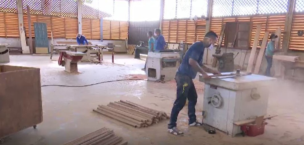 Na marcenaria, são ao todo, 17 reeducandos, que fazem o trabalho na construção de móveis, portas, janelas entre outros produtos que são usados dentro do próprio sistema prisional, e a pedidos feitos de fora do sistema, com preços abaixo do mercado. O local, também funciona como uma oficina de lanternagem, e lá trabalham mais dois presos.