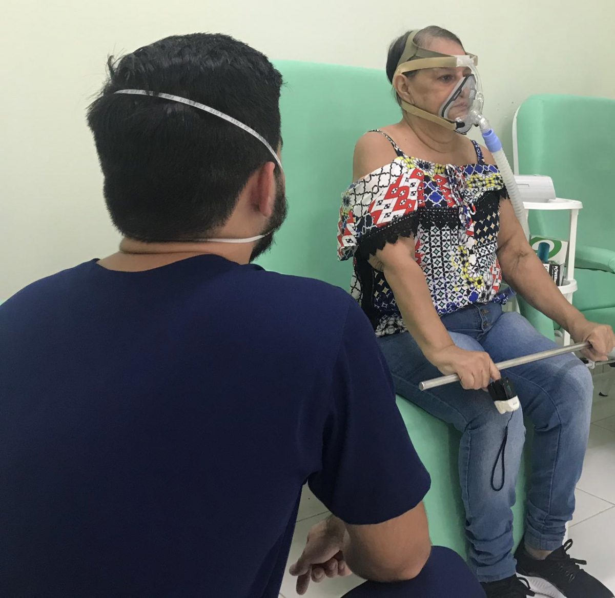 “Rosângela foi encaminhada apresentando sequelas de fibrose pulmonar e diversas queixas funcionais, como cansaço aos mínimos esforços, dor torácica, dificuldade para falar e deglutir, fraqueza muscular global, perda de massa corpórea e utilizando cadeira de rodas para se locomover”, conta Peres.