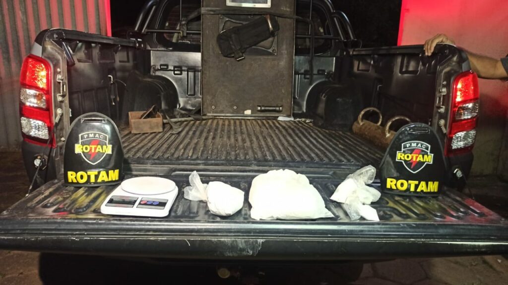 Conforme informações do boletim de ocorrência, a guarnição recebeu uma denúncia anônima, informando que em determinada borracharia, um homem estaria vendendo entorpecentes. Ao chegarem no local a equipe da Rotam se deparou com um funcionário e ao realizar revista na borracharia foi encontrado 2 prensas hidráulicas, 1 balança de precisão e 1,6 kg de cocaína.