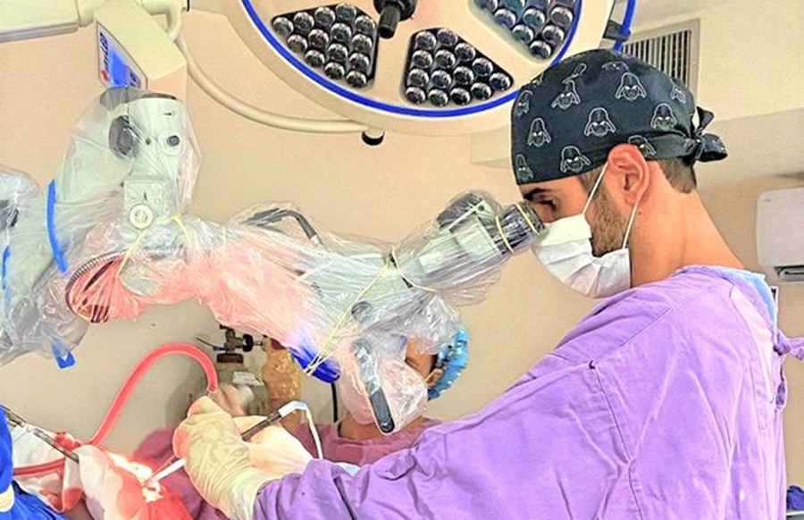 A cirurgia foi realizada há duas semanas e durou cerca de três horas, quando foi retirada uma parte do cérebro que estava dentro da encefalocele. “Em alguns casos, como há extravasamento do líquido, o cérebro precisa se acostumar com o novo volume, pois a quantidade de líquido que não vai mais para fora”, explica.