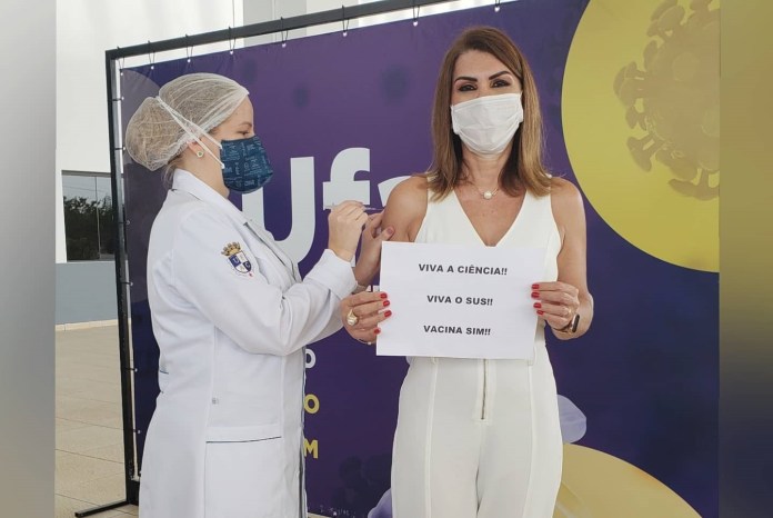 A gestora foi vacinada portando um cartaz onde estava escrito “Viva o SUS”, “Viva a Ciência” e “Vacina Sim”. O imunizante AstraZeneca foi aplicado por um profissional de saúde da própria Ufac. Em três meses, ela toma a segunda dose.