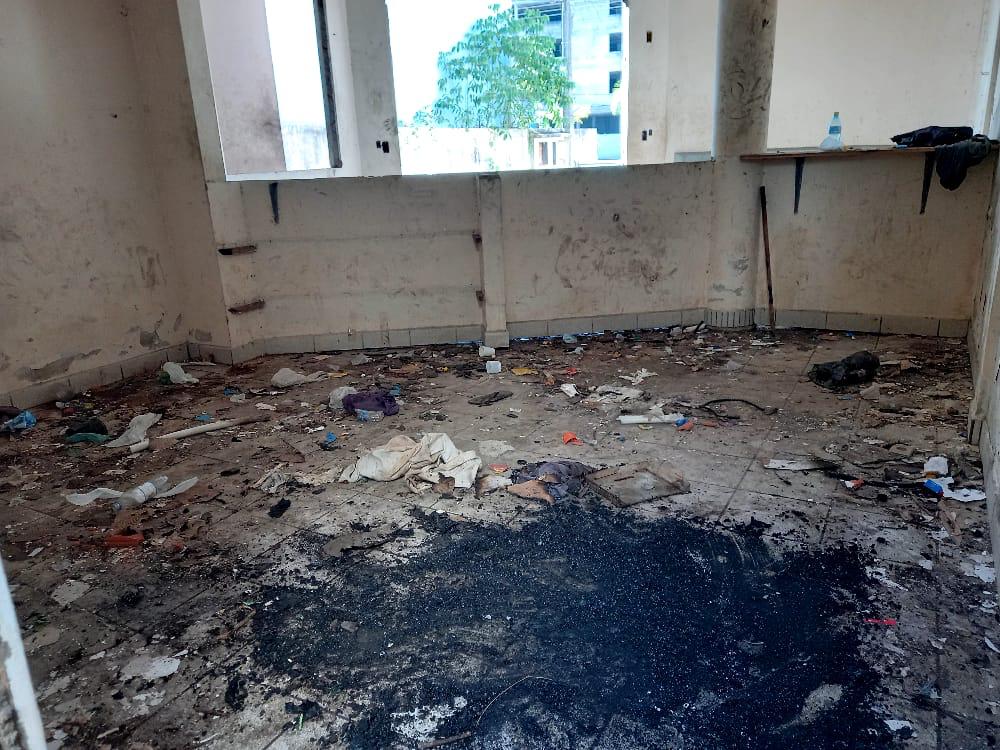 Segundo informações o prédio abandonado tem sido utilizado como moradia para alcoólatras e usuários de drogas e é possível presenciar brigas entre essas pessoas que utilizam o local.