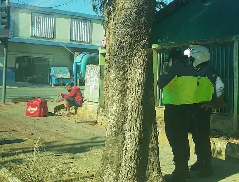 Uma foto publicada nas redes sociais pela professora Golby Pullig nesta sexta-feira (9) gerou revolta. A imagem mostra um motoboy sendo multado por agentes de trânsito da RBTrans.
