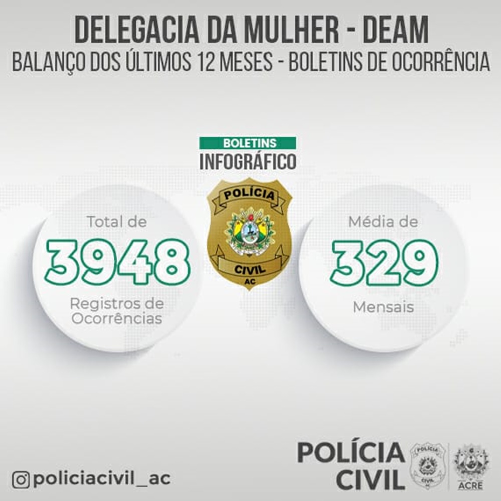 Atendendo ao preceito constitucional, que afirma que o Estado deve criar mecanismos para coibir a violência doméstica e familiar contra a mulher, a Polícia Civil do Acre criou a Delegacia de Atendimento à Mulher (Deam), que hoje, em conjunto com outras instituições, trava uma verdadeira guerra quando o assunto é combater a violência de gênero. O Acre foi o segundo estado do Brasil a criar uma delegacia especializada de combate à violência doméstica, ainda no ano de 1986.