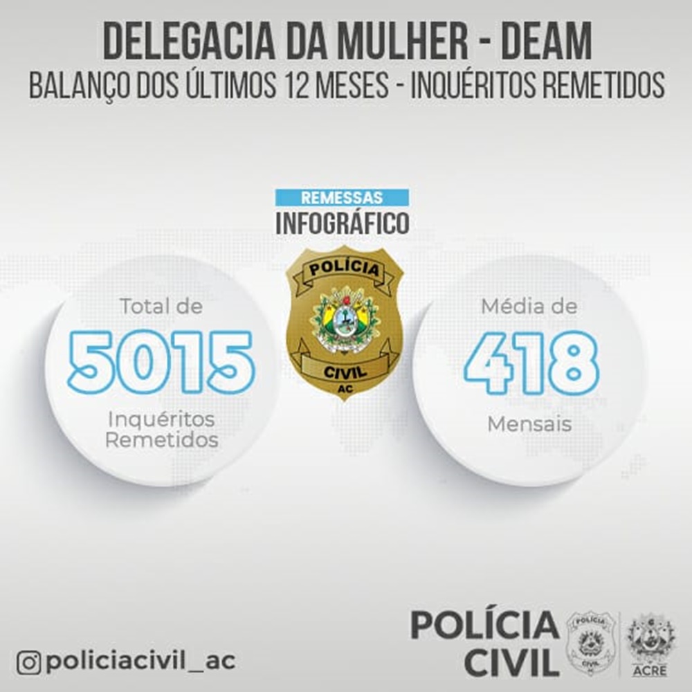 Em 2020, a equipe da Delegacia de Atendimento à Mulher (Deam) elaborou um Plano de Ação, em que foram estabelecidas metas e criadas estratégias para tornar a rotina cartorária da especializada mais eficiente. Os dados começaram a ser quantificados em 25 de junho de 2020 e, exatamente um ano após a implementação das mudanças, a equipe contabilizou 5.015 remessas de inquéritos policiais ao Poder Judiciário, apresentando uma média de mais de 400 inquéritos remetidos por mês.