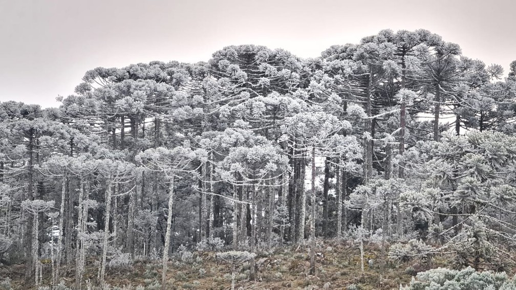 Já em Urupema, também na Serra, por volta das 5h a mínima chegou a -1,45ºC. Houve registro de temperaturas negativas também no Oeste. Em Maravilha, às 6h os termômetros marcaram -2,86ºC.