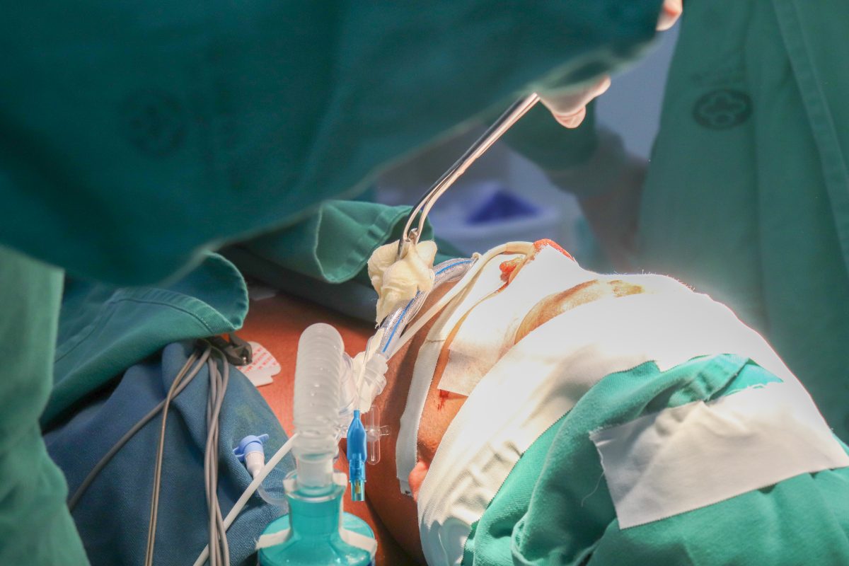 O paciente foi induzido à intervenção cirúrgica. O homem de 36 anos teve uma fratura na face e foi operado pela equipe do médico bucomaxilofacial Fabiano Conrado, formada por oito profissionais, entre anestesiologistas, instrumentadores, residentes e internos.