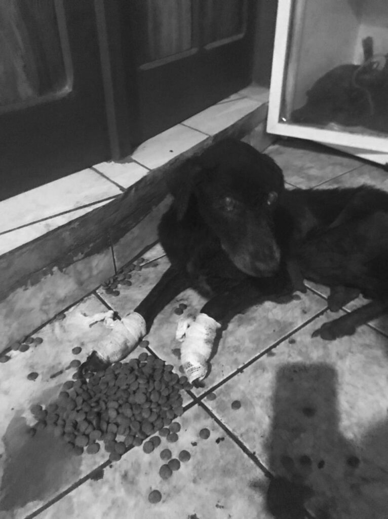 De acordo com as voluntárias da ONG, a cachorrinha não resistiu aos maus-tratos e ferimentos e morreu nesta última quinta-feira, e segundo uma das voluntárias, o animal estava tão desnutrido e com ferimentos tão sério nas patas que não resistiu.