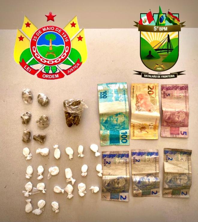 Quando chegaram no local, um tentou se evadir, mas foi abordado e detido. Este teria dito que estava ali para fazer o abastecimento da ‘boca’ e estava com um pedaço de maconha em sua posse. Em mais uma revista, foi localizado algumas trouxinhas contendo cloridrato de cocaína.
