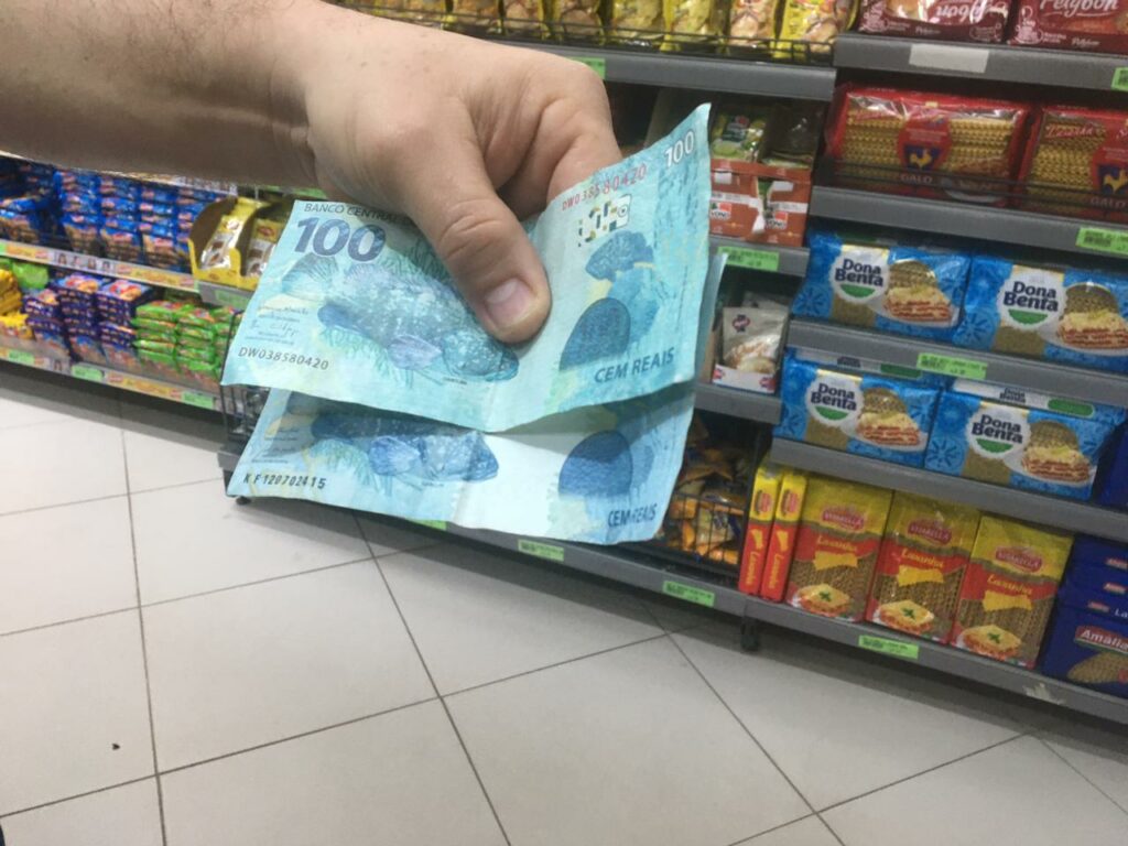 De acordo com o gerente, um cliente pagou suas compras com as notas para uma operadora de caixa que, após realizar o teste, constatou a nota falsa.