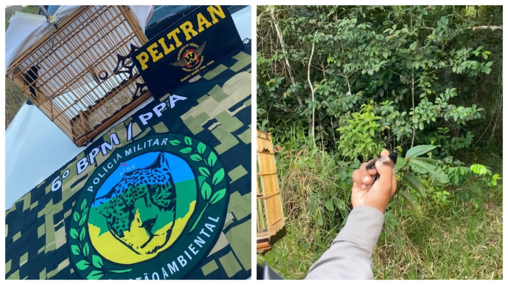 O Policiamento Ambiental e Trânsito Seguro do 6° Batalhão da Polícia Militar, estavam realizando uma operação conjunta em Cruzeiro do Sul quando visualizaram três indivíduos que caminhavam segurando umas gaiolas.