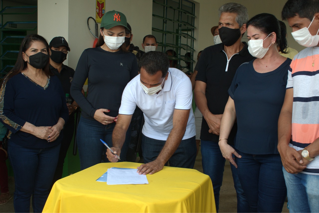 O prefeito ainda assinou ordem de serviço para a construção de uma quadra coberta, também resultado de emenda parlamentar da deputada federal Jéssica Sales.