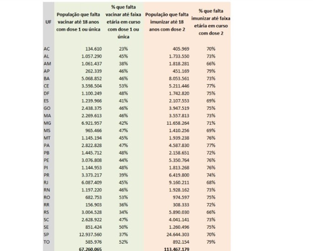 O Ministério da Saúde realizou um levantamento que aponta o Acre como um dos estados que mais aplicaram as primeiras doses recebidas da vacina contra a Covid-19, de acordo com sua população. Os dados mostram que falta apenas 23% do público maior de 18 anos procurar os postos para receber a primeira dose de imunizante.