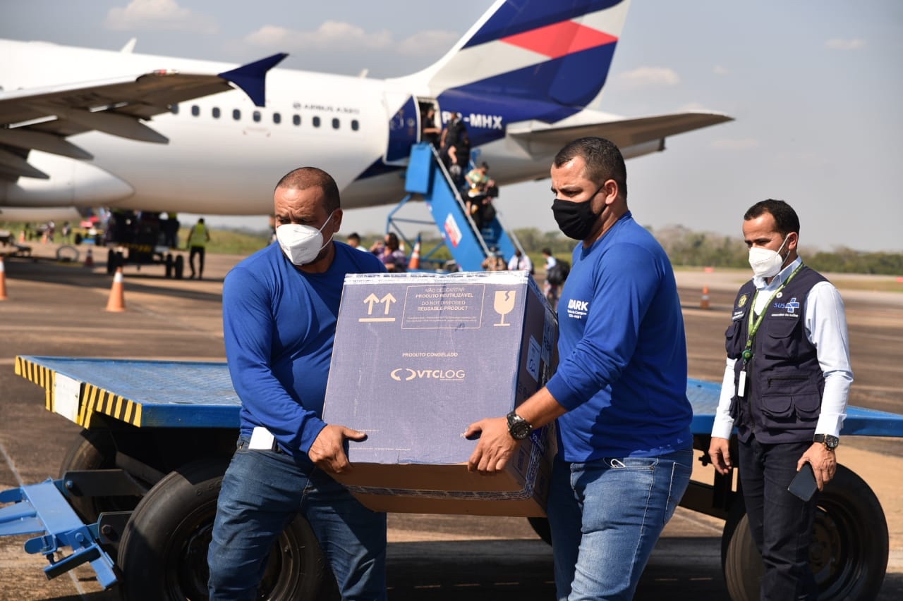 A logística de entrega aos municípios, responsáveis pelo cronograma de vacinação, desenvolve-se com o auxílio das demais instituições do governo do Estado, como a Segurança Pública, para que os imunizantes cheguem de forma célere e segura às localidades mais isoladas.