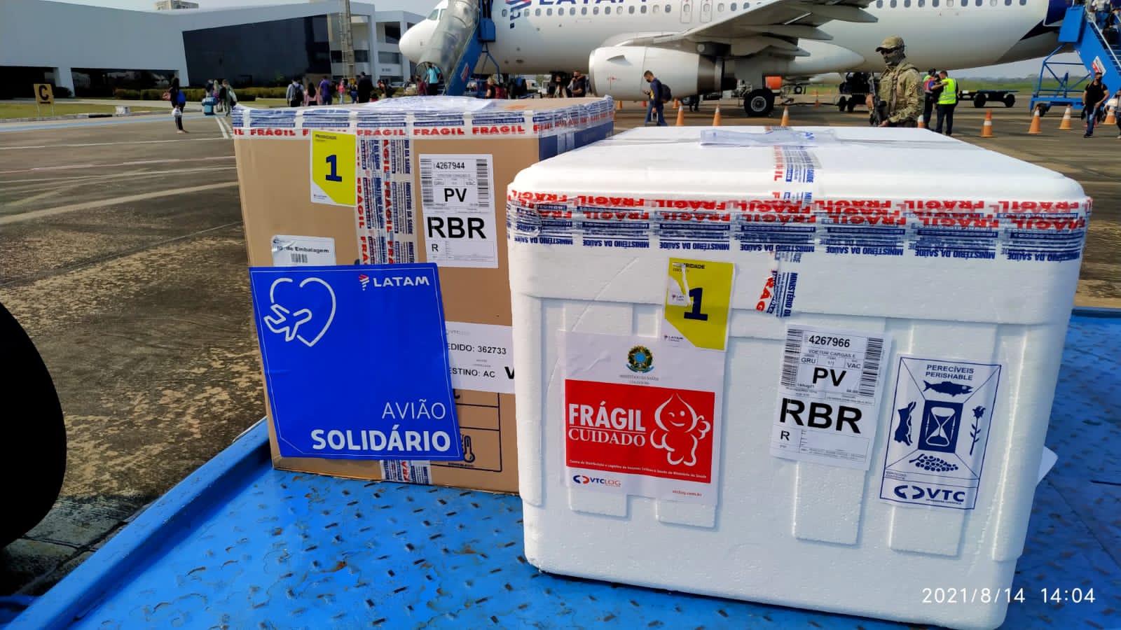 O governo do Acre, por meio da Secretaria de Saúde (Sesacre), recebeu do Ministério da Saúde (MS) neste sábado, 14, mais 7.330 mil doses dos imunizantes contra a Covid-19, sendo 4.680 doses de Pfizer, 2.650 doses da vacina produzida pelo Butantan, dando continuidade ao processo de imunização da população acreana.