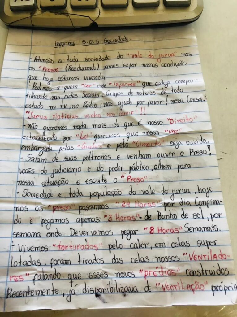 Presidiários da unidade Manoel Neri, enviaram uma carta aos meios de comunicação, onde alegam não ter o cumprimento de direitos básicos, como banho de sol de 8 horas semanais, sendo que atualmente são de apenas 3 horas. “Vivemos torturados pelo calor, em celas super lotadas onde de lá foram tirados os ventiladores, alegando que os novos prédios têm ventilação própria”.